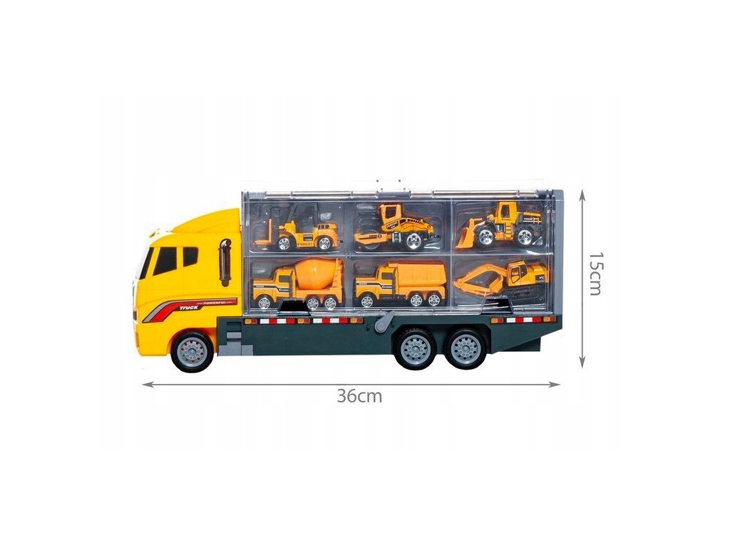 • TIR Odťahovka + 6 stavebných strojov, s ktorými sa dieťa môže hrať samostatne.