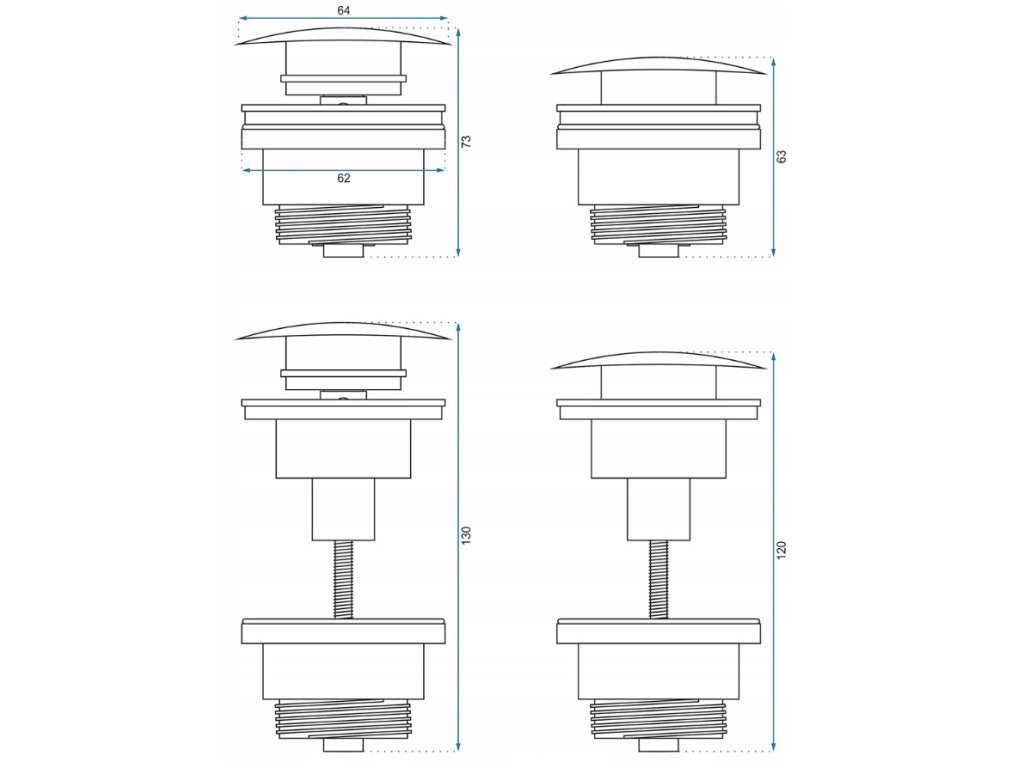 • Model: uniwersalny - do umywalek z przelewem jak i bez