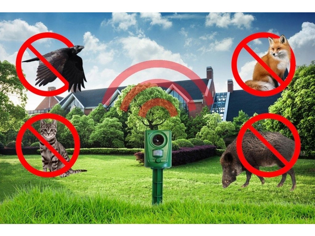 • Wodoodporny odstraszacz ptaków, zwierząt i innych nieproszonych gości działający na zasadzie emitowania silnych ultradźwięków.