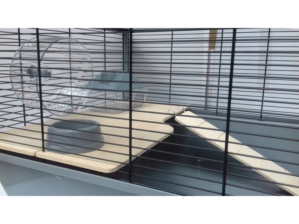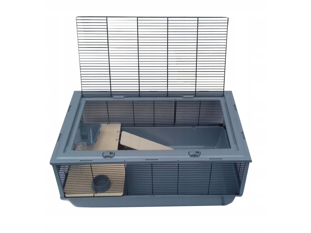 Na górze klatki znajduje się duża kratka dzięki której w prosty i łatwy sposób można wyciągnąć zwierzątko lub posprzatać kuwetę.