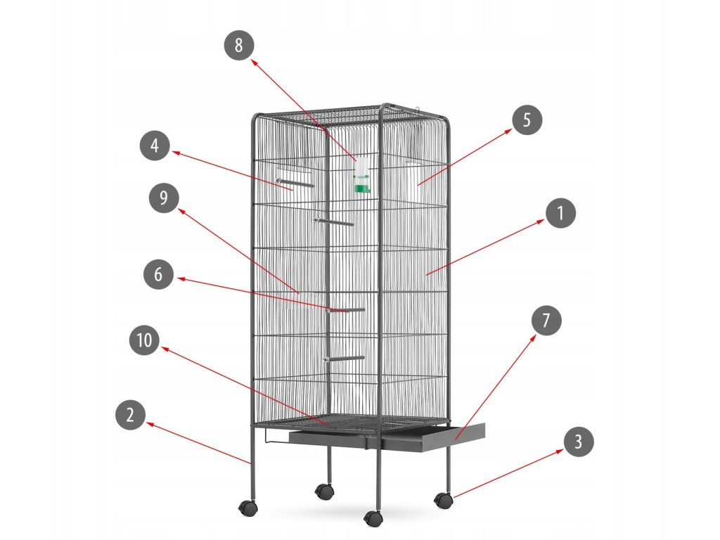 • Duża i wygodna woliera o wymiarach 54x54x146cm