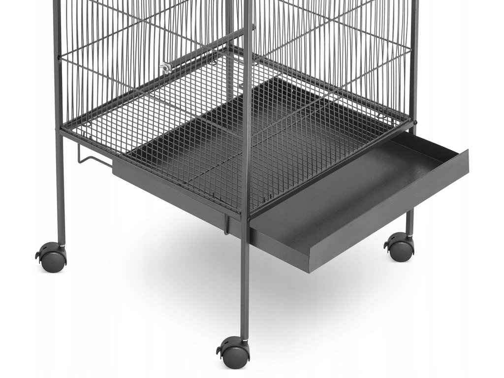 Sprzątanie ptasiej klatki bywa uciążliwe, ale nie zawsze! W naszej klatce zamontowaliśmy stałą kratkę podłogową oraz ruchomą wyciąganą tackę na piasek. Dzięki takiemu rozwiązaniu posprzątasz już w kilka minut bez obaw, że w tym czasie ptaki wydostaną się z klatki, ponieważ absolutnie nie ma takiej możliwości! Tacka, podobnie jak cała klatka, jest wykonana z malowanej proszkowo na kolor antracytowy stali nierdzewnej, dzięki czemu doskonale się z nią komponuje, jest wytrzymała i solidna. Estetyka, czystość i porządek mają dla Ciebie znaczenie? Zapewni Ci je duża klatka dla papug HIGHER!
