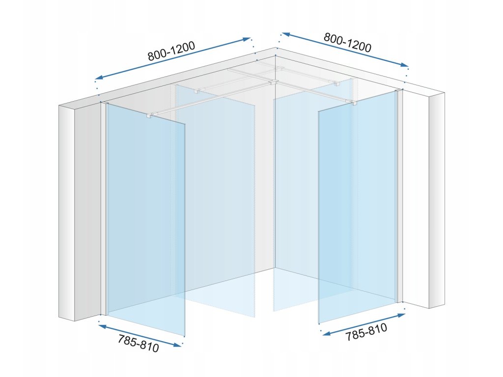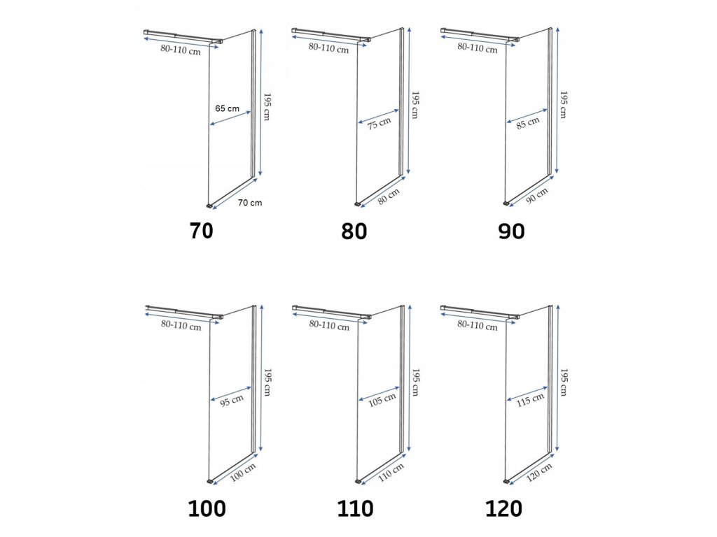 Dostępne są wymiary od 70 do 120 cm, w zależności od miejsca w łazience i potrzebnego światła wejścia możesz dopasować najwygodniejszą konfigurację szyb.