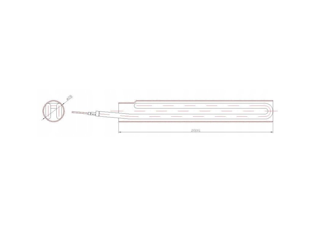 • Rozmery: dĺžka ohrievača 200+/-1 mm, priemer 28 mm, dĺžka kábla 90 cm