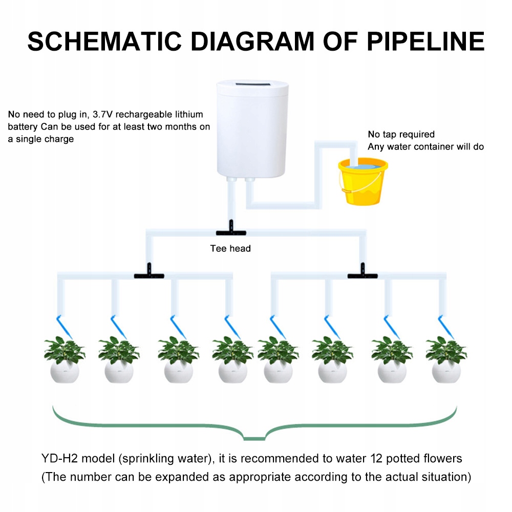 K dispozícii je 3 metre dlhá biela trubica, ktorá sa dá rezať podľa polohy vašej rastliny a vedra na vodu, tento stroj je možné zavesiť na poličku. Vedro na vodu by malo byť nižšie ako kvetináče. Potrubie odrežte až po skontrolovaní výšky od spodnej časti vedra na vodu po vstupnú polohu stroja.