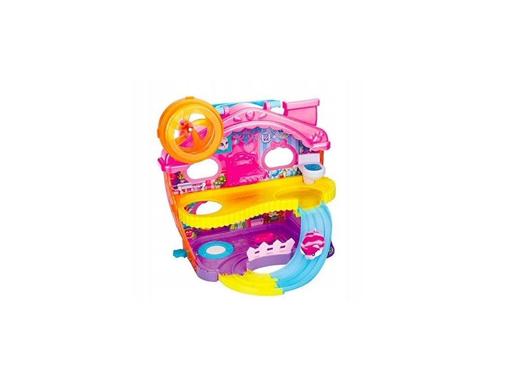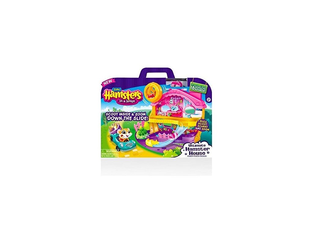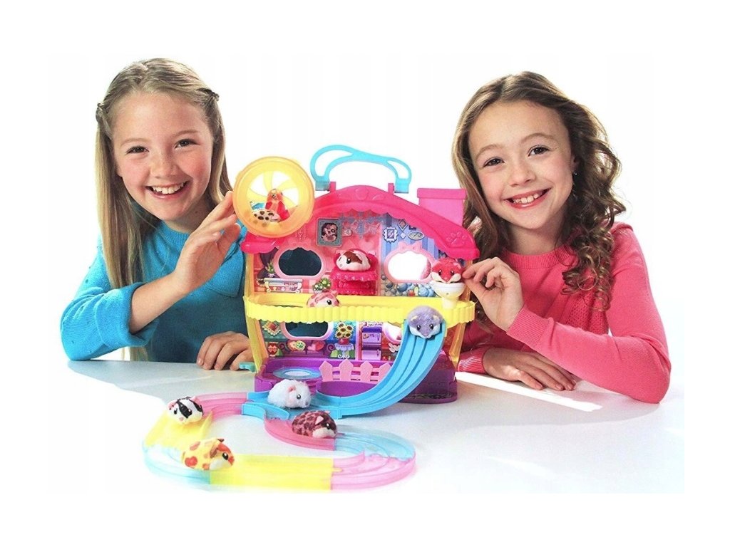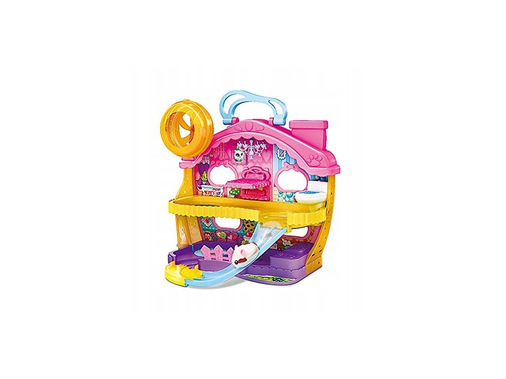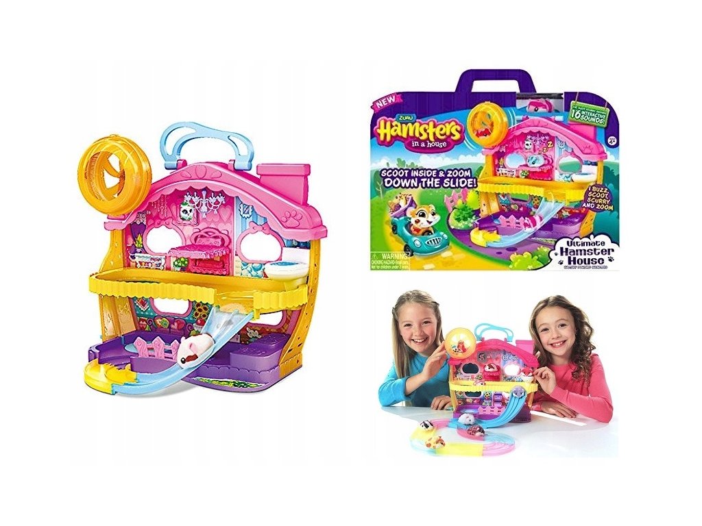 Domek z serii Hamsters in a house został stworzony przez firmę Zuru. W skład zestawu oprócz domku ze zjeżdżalnią wchodzi śliczny, różowy chomik w paski o imieniu - Swirl. Zabawka wydaje 16 różnych dźwięków m.in. odgłosy jedzenia, spania i wiele innych.